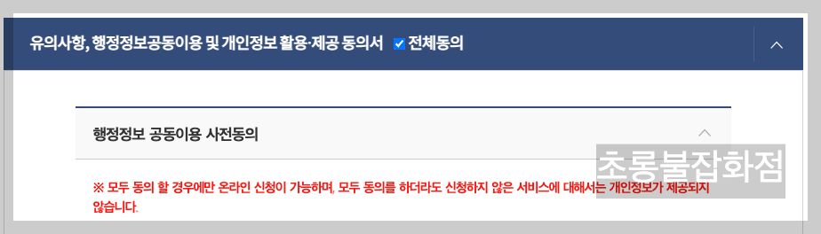 원스톱으로 여러 행정이 진행되기 때문에, 동의해야할 항목이 많네요. 체크체크 해줍니다.