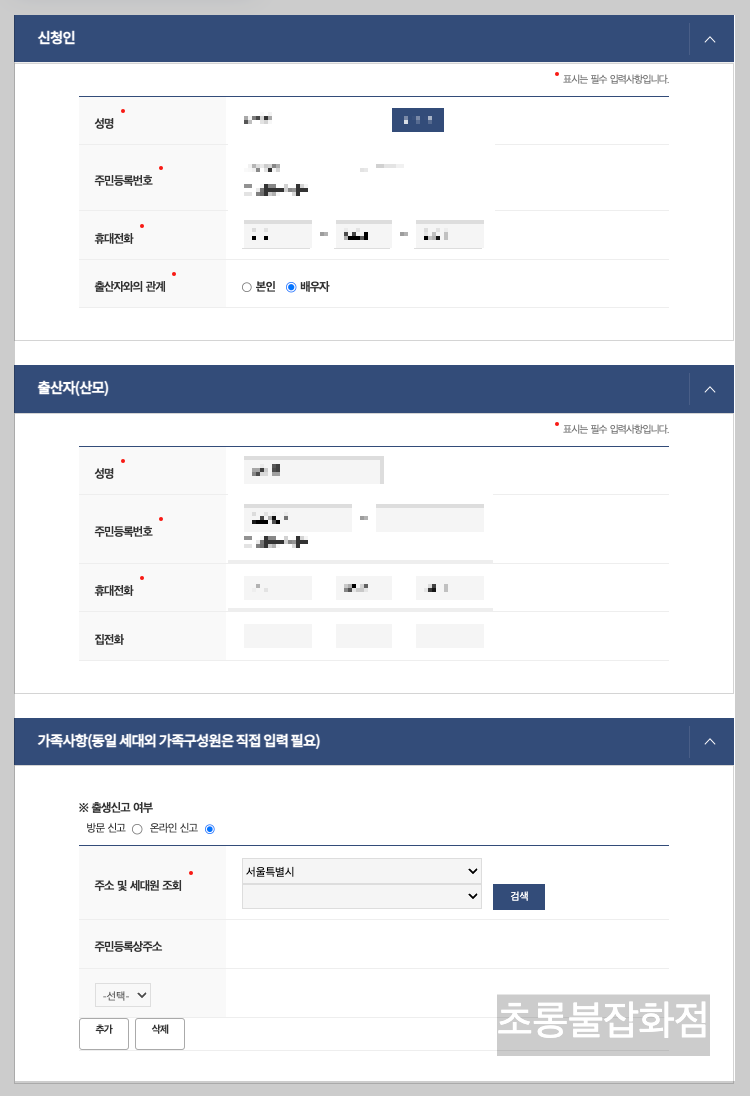 가족 사항을 입력해줍니다.