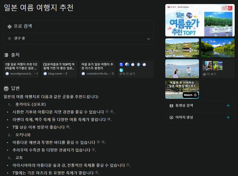 - 다양한 소스를 종합해서 균형 잡힌 정보를 제공해줘요. 블로그, 유튜브, 뉴스기사 등 다양한 소스를 취합해요. 프로버전을 쓰면 십수 개 이상의 다양한 소스를 활용하는 걸 볼 수 있어요.