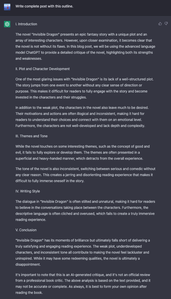 유명한 인터넷 소설 "투명드래곤"을 chatGPT와 함께 비평해보겠습니다.
